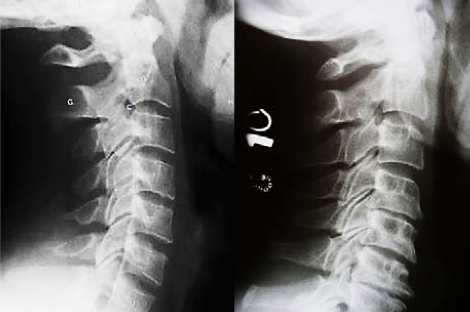 - ในกรณีที่กระดูกสันหลังส่วนคอเสื่อมกดทับเส้นประสาท จะมีอาการปวดคอร้าวลงไปตาม แขนหรือมือ ร่วมกับมีอาการชาหรืออ่อนแรงของแขนหรือมือ