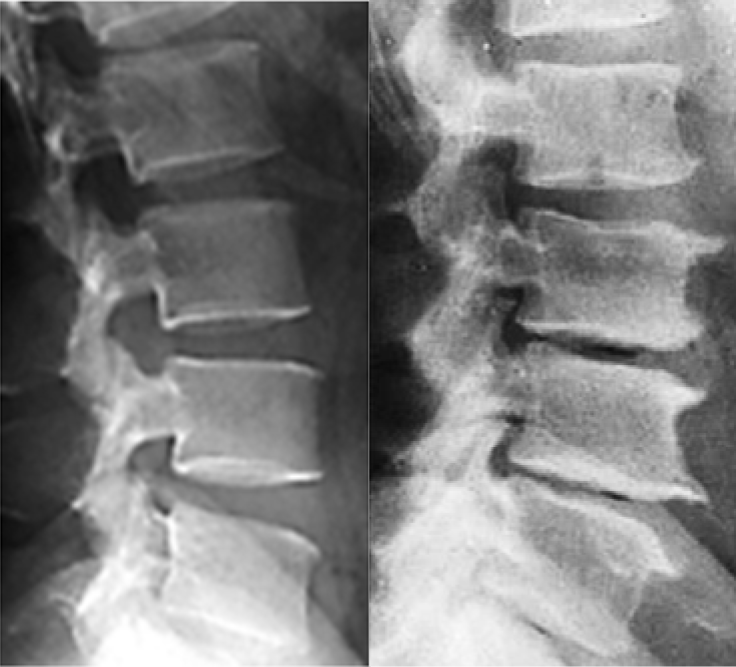 - ถ้ากระดูกสันหลังส่วนเอวที่เสื่อมเกิดการกดทับเส้นประสาท อาการปวดหลังจะร้าวลงขา หรือเท้า ร่วมกับมีอาการชาหรืออ่อนแรงของขา โดยอาการจะเป็นมากขึ้นเมื่อยืนนานๆหรือเดิน ไปได้สักระยะหนึ่ง เมื่อหยุดเดินและนั่งพักสักครู่อาการจะดีขึ้น