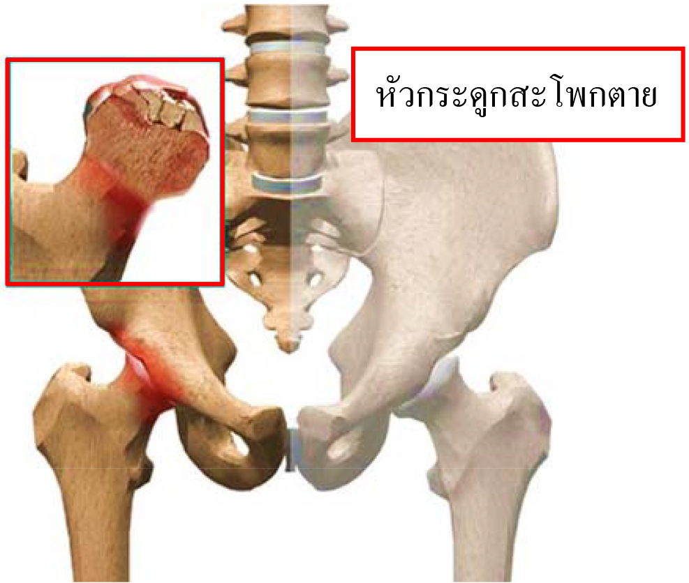 คือภาวะที่เซลล์กระดูกในหัวสะโพกตายจากสาเหตุต่างๆ ส่วนใหญ่เกิดจากการขาดเลือดไปเลี้ยงกระดูก หัวสะโพก ทําให้ความแข็งแรงของกระดูกลดลง เกิดการยุบตัวของกระดูกหัวสะโพกตามมา หากไม่ได้รับการ รักษา โรคจะดําเนินไปเรื่อย ๆ จนเกิดภาวะข้อสะโพกเสื่อมตามมา และเป็นสาเหตุสําคัญอันดับแรกที่ต้องผ่าตัด เปลี่ยนข้อสะโพกเทียมในโรงพยาบาลมหาราชนครเชียงใหม่