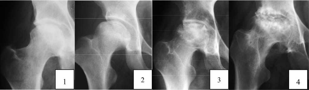 ผู้ป่วยจะมีอาการเจ็บปวดข้อสะโพก บริเวณขาหนีบ อาจปวดร้าวไปหน้าต้นขาหรือหัวเข่าได้ ขยับข้อ สะโพกแล้วรู้สึกปวดมากขึ้น ติดขัดหรือขยับได้น้อยกว่าที่เคยเป็น เดินไม่คล่อง ปวดเวลาเดิน ถ้าเป็นมากอาจ เดินลําบาก เดินกะเผลก หรือรู้สึกขาสั้นยาวไม่เท่ากัน